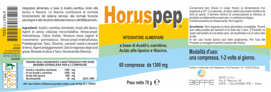 È un Integratore alimentare a base di Acelil-l-camitina, Acido alfa lipoico e Niacina. la Niacina contribuisce al normale funzionamento del sistema nervoso, alla normale funzione psicologica e alla riduzione della stanchezza e dell'affaticamento.