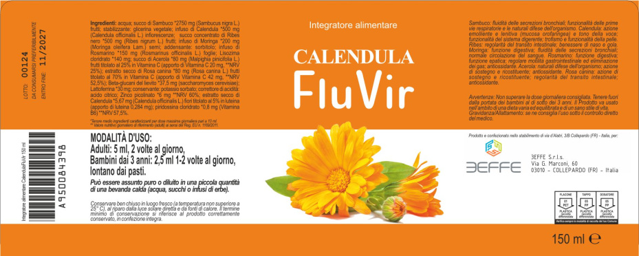 soluzione bevibile a base di succo di Sambuco e Ribes nero, con Calendula, Moringa, Rosmarino, Acerola e Rosa Canina ricche in Vitamina C, Lisozima, Betaglucani, Lattoferrina, Zinco e Vitamina B6.